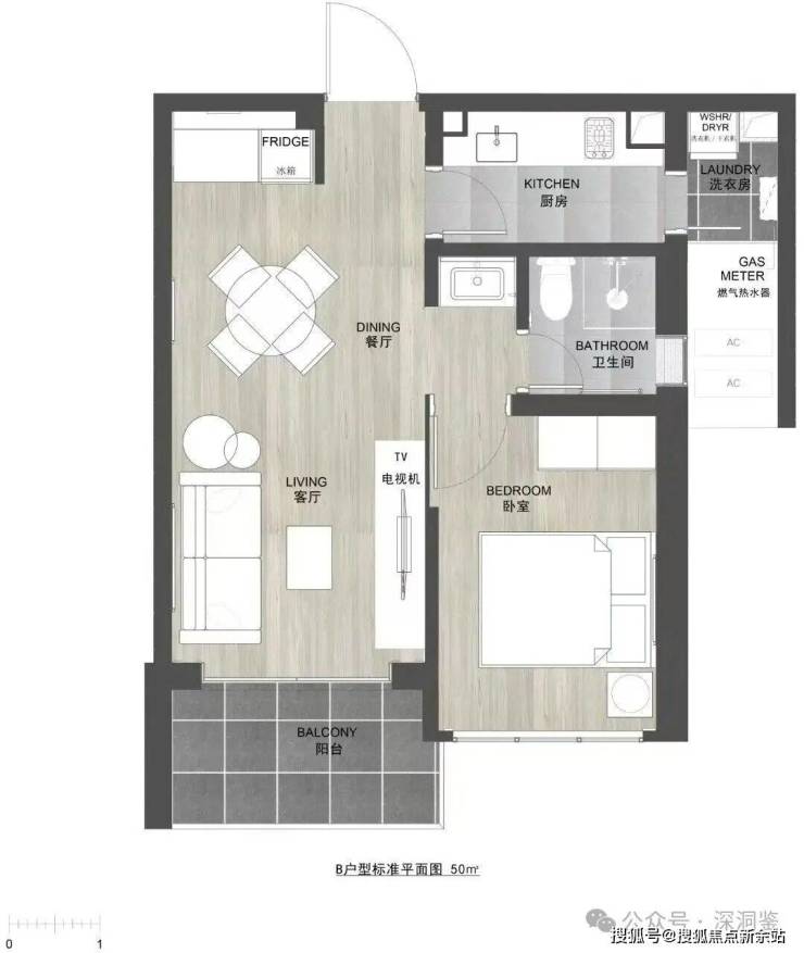 2️⃣约50㎡1房1厅