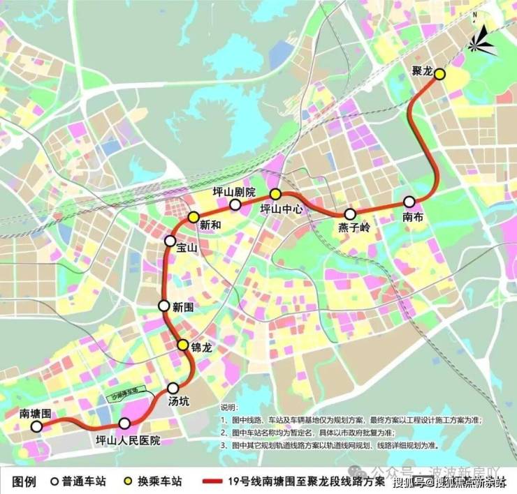 - 19号线荔景站(规划):1站聚龙,串联坪山核芯。