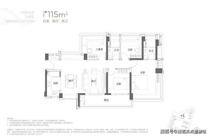 建面约115㎡4房2厅2卫