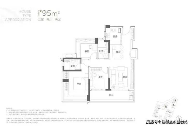 建面约95㎡3房2厅2卫