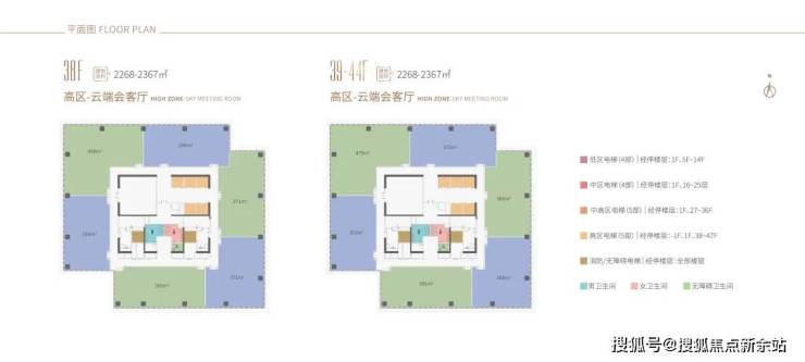 38-44F,是企业会客厅,约338-479㎡,45-47F,约1427-1596㎡(整层)
