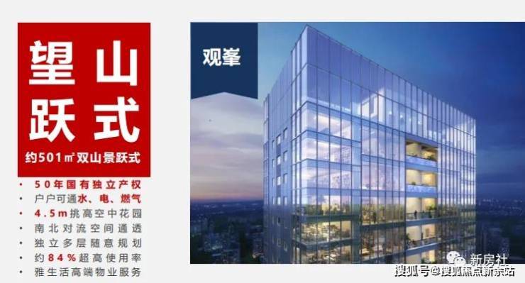 建面约554平企业总部,超130%使用率,配置屋顶花园,可打造个性化花园。集团总部、企业总部,市场罕见,一栋一企业,可独立冠名,企业昭示性强。望山跃式,双层/三层使用空间,高拓展高实用率,功能灵活,方便企业打造个性化空间。望山平层,一梯一户,尽显企业气派;双阳台设计、高层无遮挡,将室外风光尽收眼底。