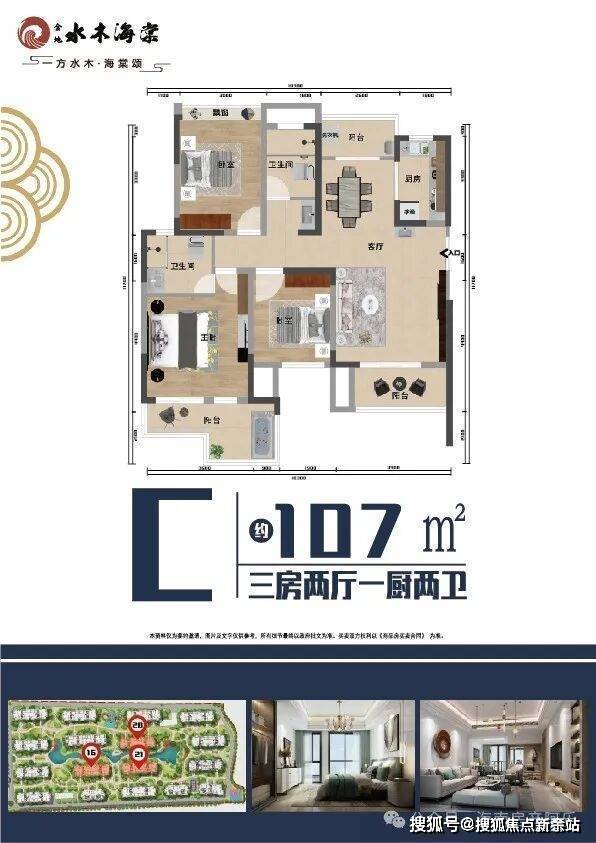 建筑面积约107㎡;3室 2厅 1厨 2卫 大阳台 入户泡池