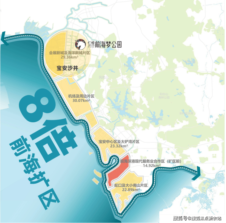 2021年前海扩区8倍,宝安沙井被纳入前海范围!2023年《前海总规》 发布,明确“深圳将全力建设前海“,23年前海GDP约2464亿,10年增长50倍!约1/3世界500强入驻,近22万家企业云汇!深圳新中心稳稳落定。