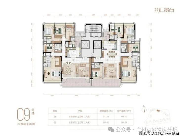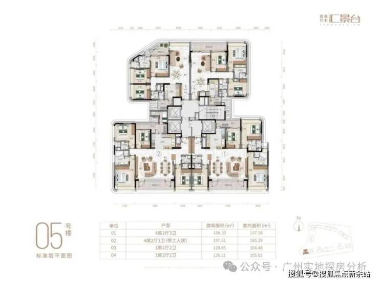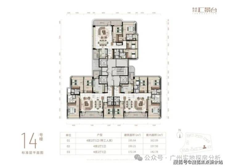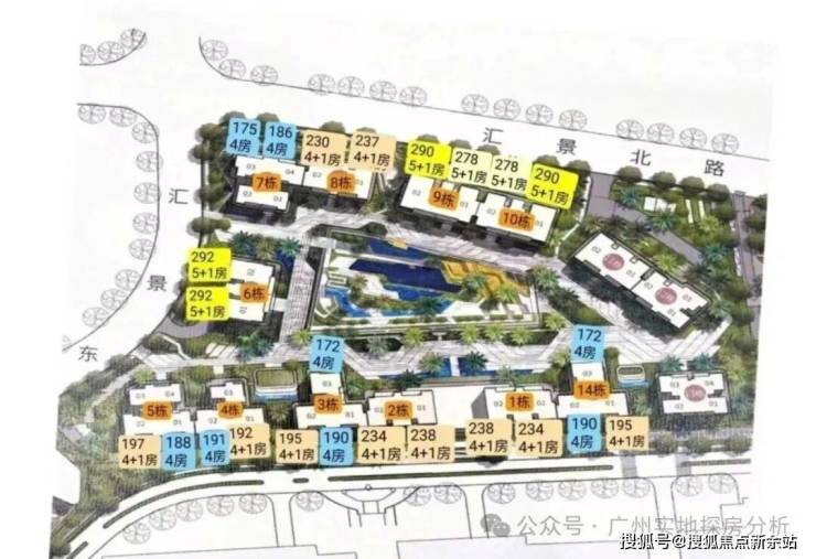 项目由14栋12层小高层组成,涵盖123-352㎡三至五房,共8类户型。