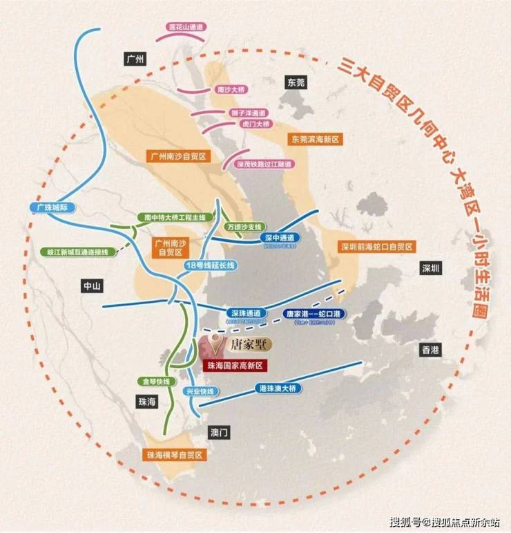 4. 深珠通道接驳处,与深圳前海仅一桥之隔,深中通道、18号轻轨延长线等交通路网,实现珠海横琴自贸区、广州南沙自贸区和深圳前海蛇口自贸区三大自贸区几何中心构建大湾区一小时生活圈