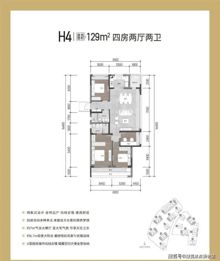 129㎡:四房两厅两卫