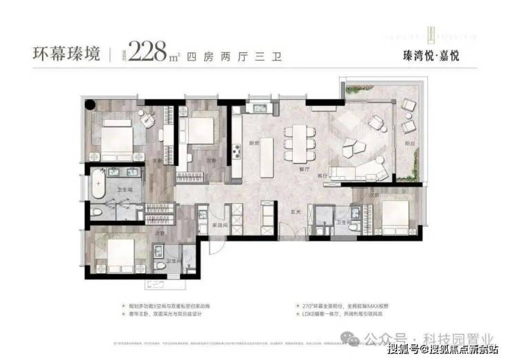 3. 主力户型:160-228㎡纯改善大平层,圈层纯粹