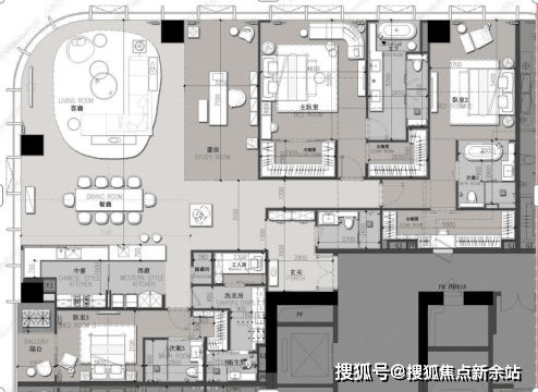 l超大主卧空间,面积高达26㎡,双衣帽间,前卫国际化卫生间设计,明卫空间,尽享奢阔生活;