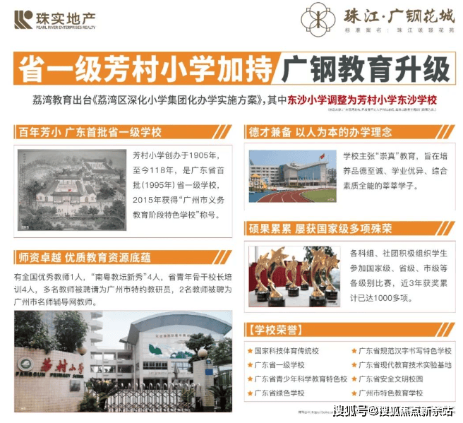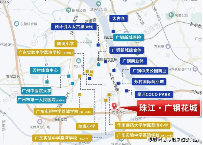 项目自身只配建了一所幼儿园,小学根据政策周边的学校,周边有东沙小学、新东小学以及广钢南区的华附荔湾小学等,具体读哪个就看交楼后教育部门的划分了。