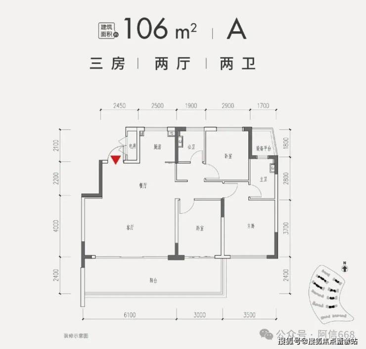 2、106平米三房两卫 B户型