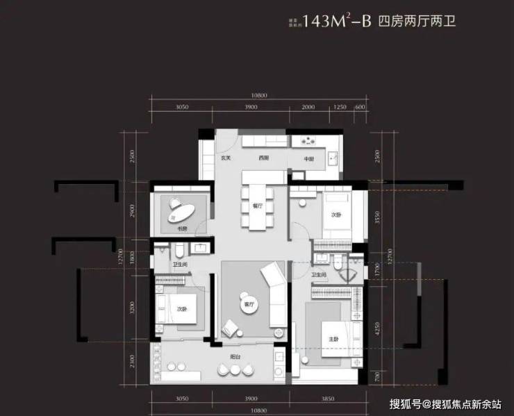 以建面约300㎡的宽幕大平层为例,景观视野全小区最佳,是高端圈层的首选户型。
