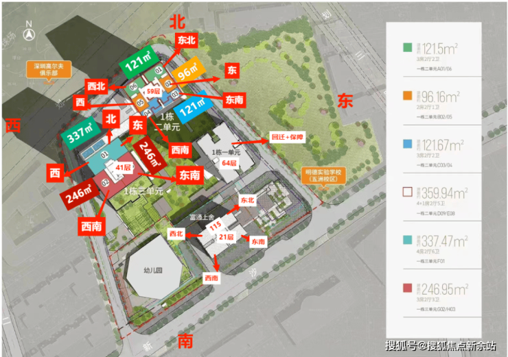 如果是自住需求,回迁房那栋127平4房2卫户型值得重点关注,高楼层可远眺海景,主卧能欣赏高尔夫景观,虽然实用率不算突出,但整体表现均衡;商品房那栋01和06户型景观优势极致,能享受无敌高尔夫视野,但户型仅能做三房两卫,使用率略低,更适合痴迷景观的购房者。项目的100米高空透明泳池是一大亮点,但需理性看待业态复杂、周边环境一般的问题。