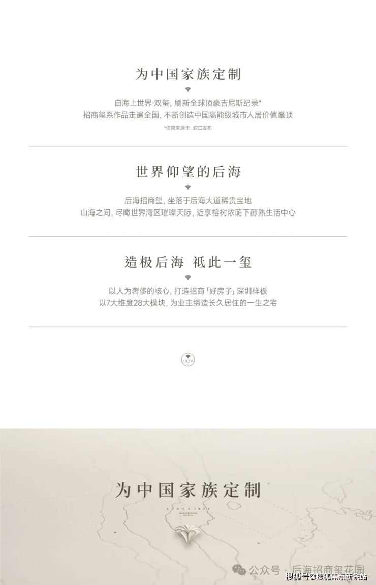 主打T2/T3楼型,户均218㎡,全大户型纯粹社区,将打造深圳湾一线豪宅。作为玺系的全新产品,后海招商玺是招商继“5000万蹲”深圳双玺和“2024年交付天花板”太子湾招商玺之后,再次带来的玺系新作。🏢深圳南山招商玺花园 【售楼处认证电话】🎥:400-856-3771(已认证)⭕