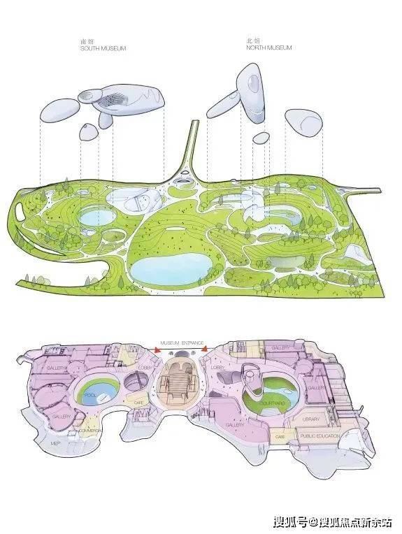 △ 两馆之间的中轴景观连桥可以抵达屋顶剧场