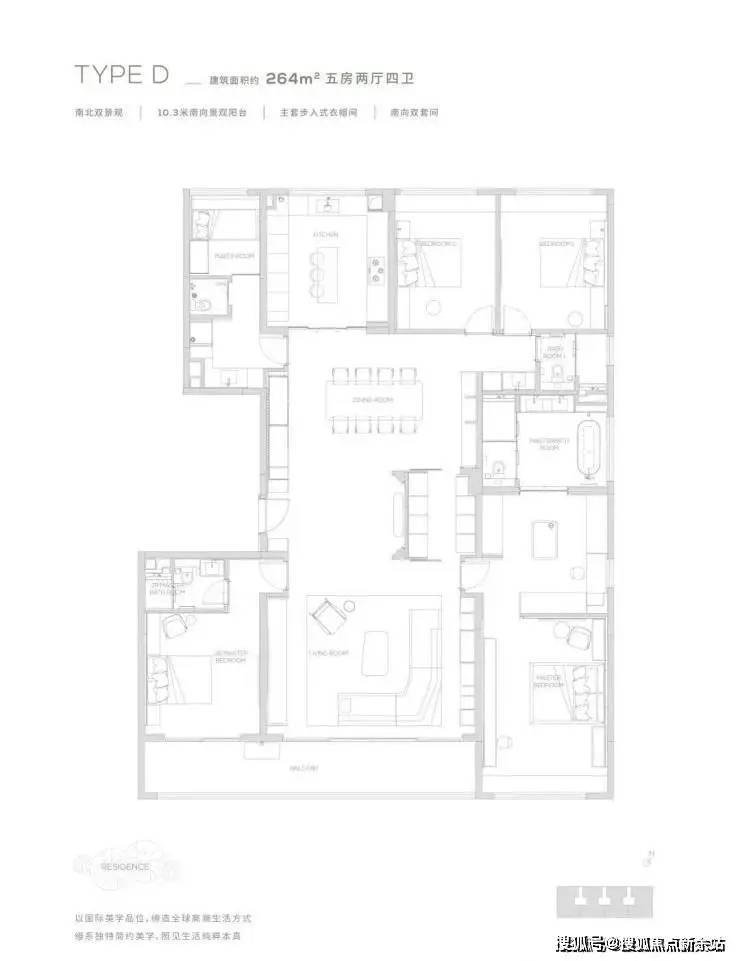 264为五房两厅四卫产品,更细腻的产品设计,超奢华四件套南向主卧,标准南向次主卧, 6.6米巨型方厅,纵向超长LDK一体化空间,专属家政保姆空间,超大容量收纳空间,令居住的尊贵从每处品质细节里流露而出,创造独一无二的奢享体验。