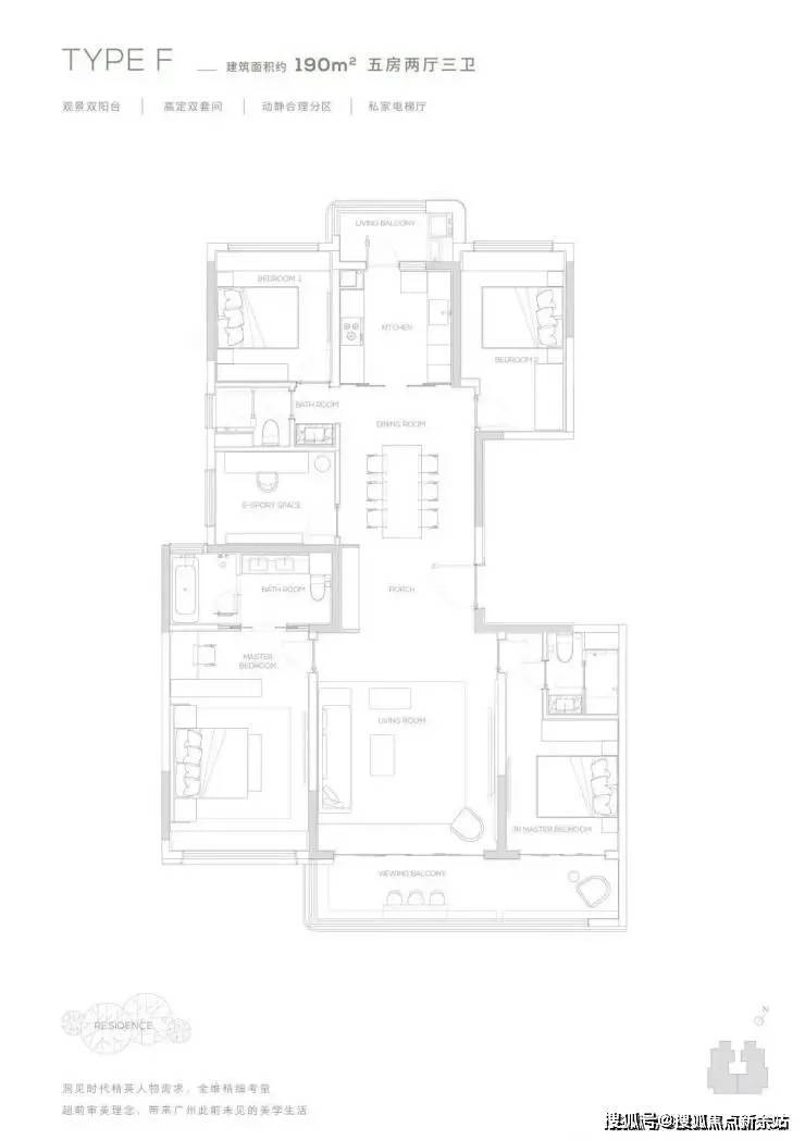 190产品为五房两厅三卫产品,充满了对云端人群生活的独特见解,南向双主卧,中西厨布局,打造纵向超长LDK一体化空间,产品所体现的不只是居住产品,更是特属客群所拥有的生活方式。