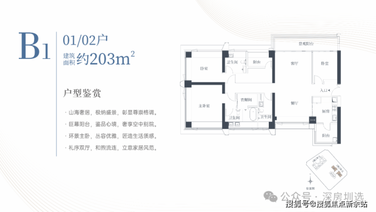 匠筑建面约124-203㎡全生命周期天幕户型,360°采光通风,270°环景主卧,山海日常推窗可得。背山面海,藏风聚气,家宅福泽之地。