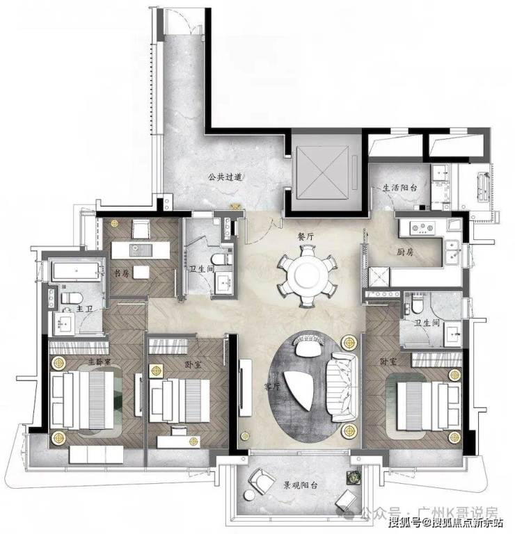 ⑤多套房设计,灵动多功能空间,满足三代同堂居住需求。