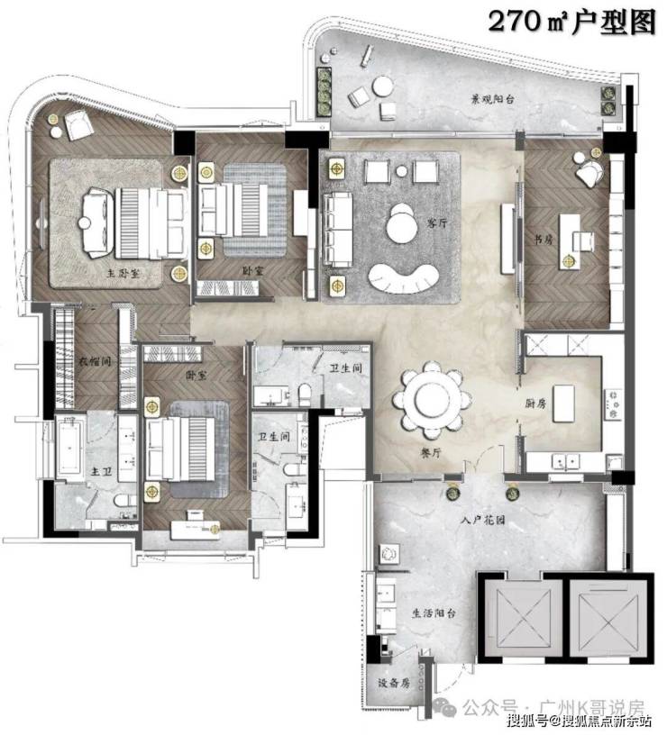 ⑥星级主卧套房,配备衣帽间及四分离卫生间。