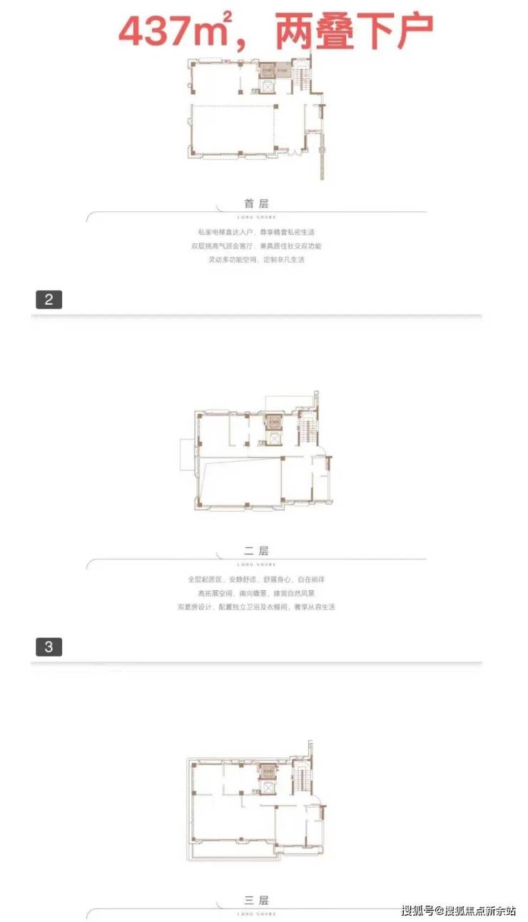 ●产品户型:两叠(上叠392㎡、下叠437㎡),三叠(上叠 285㎡、中叠279㎡、下叠305㎡)