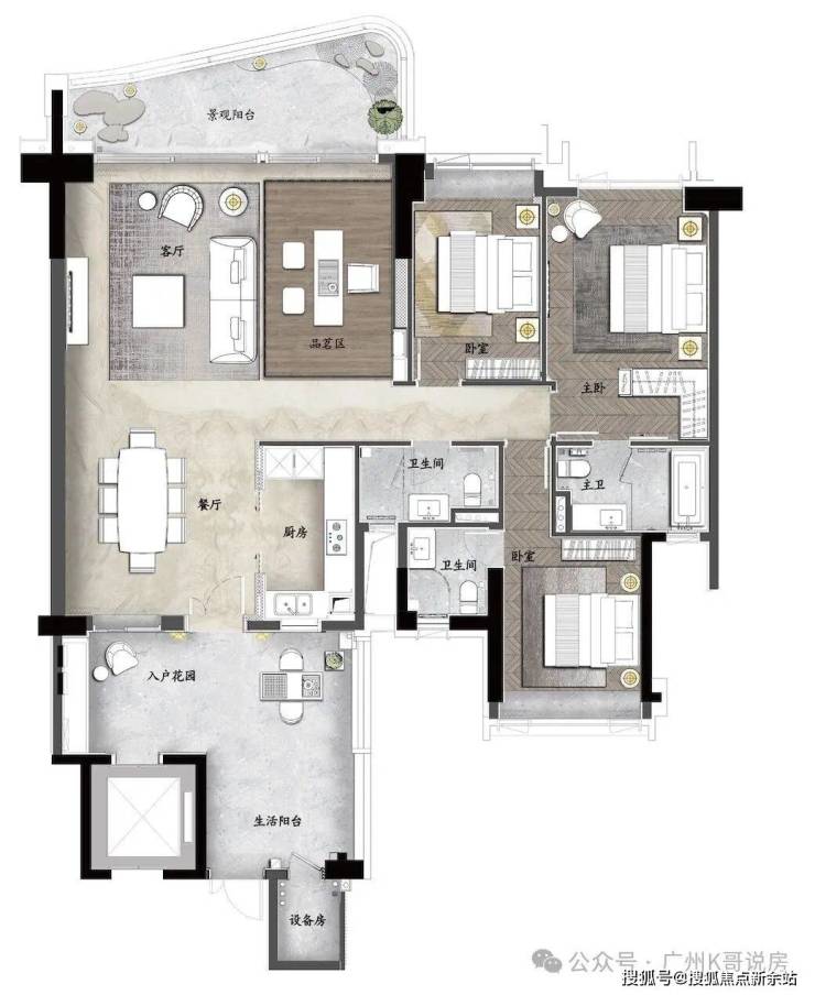 ④超低容积率仅0.99%,除自家独立花园外还打造5个大型下沉式花园并有丰富的功能(如儿童乐园、瑜伽健身冥想、开放剧场等),可满足不同年龄段业主需求。