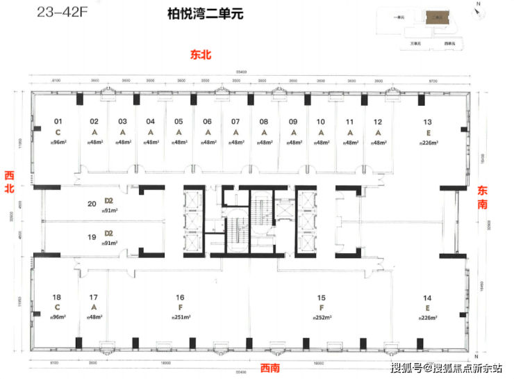 楼层高:1单元5-40层-2单4-43层元商办43层,3-4单元4-48层