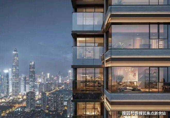 材料的选择进一步强化了这种温润特质。立面主体采用仿石材铝板,这在当前以玻璃铝板为主流的深圳豪宅市场中,本身就是一个态度鲜明的立场。通过精细的构造设计,让材料呈现出一种“轻”的状态:弧面切割削弱了仿石材铝板的沉重感,阴影缝的精确控制让立面在日光下产生微妙的明暗律动。