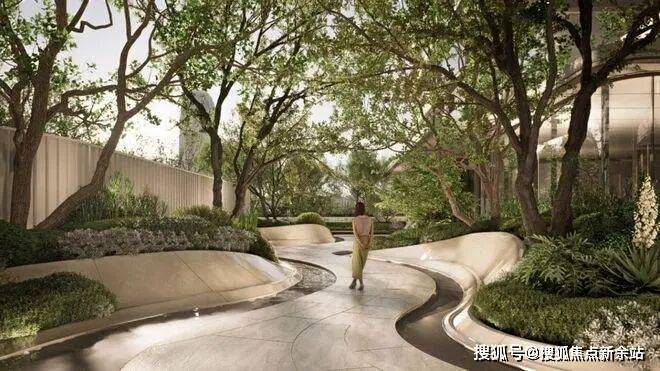 社区内部,围合式的中央庭院以水景为核,串联起休闲步道、儿童游乐区与邻里交流空间。约500㎡的中央水景倒映着建筑与天光,营造出静谧的度假氛围。天桥的设计将社区与双界河公园无缝衔接,让自然绿意从外部延伸至家门口。