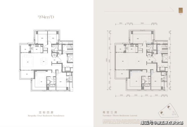 139㎡B户型与A户型同位于3栋,差异在于B户型位于楼体中间部分,竖厅双龙抱珠格局,主次卧均带270°飘窗。同样支持三房、四房自由切换,装修风格亦有两种选择,与A户型相比,B户型优势是作为一层三户中较为凸出楼体的一户,与同层其余两户的对视问题较小,可以更好的保护隐私问题,但缺点是非南北通透户型,介意这点的朋友得注意啦。