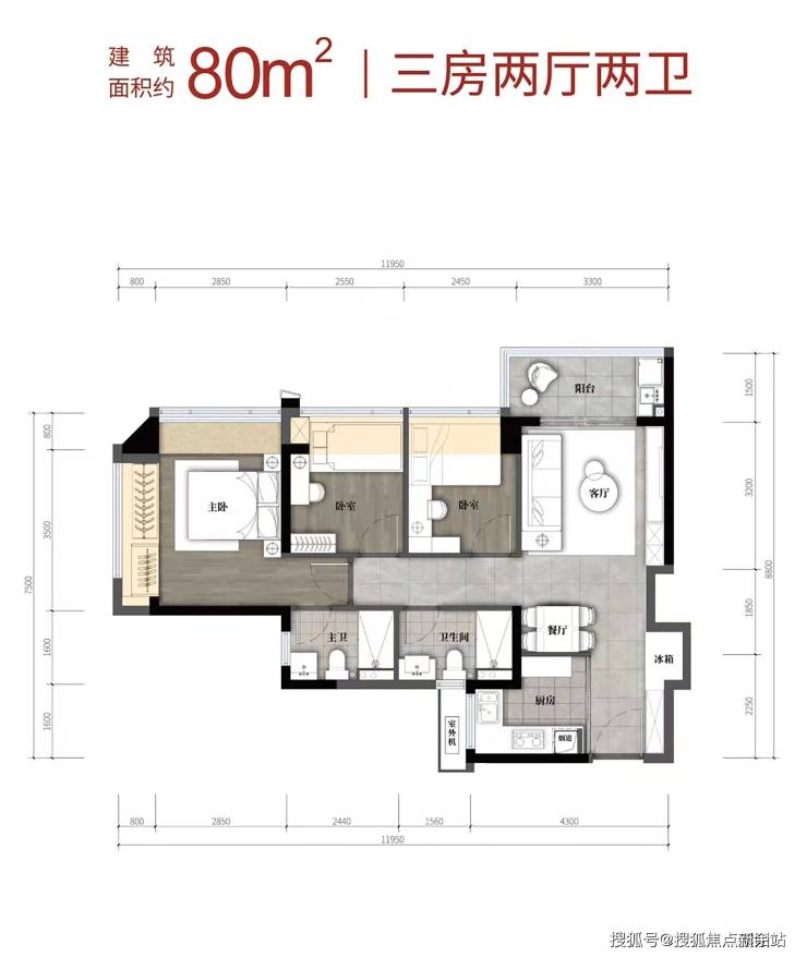 建面约80㎡做到三房两卫:用过去两房的面积,实现了三代同堂的居住功能。