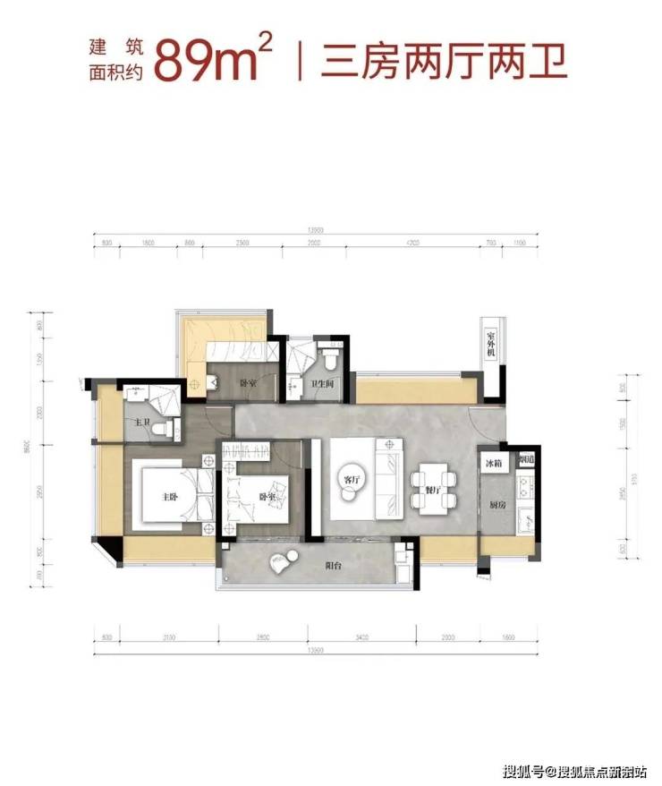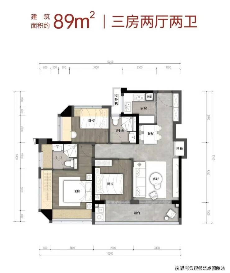 建面约89㎡做到三房两卫(竖厅&横厅可选):这个面积段,观玥给出了两种截然不同的生活场景。