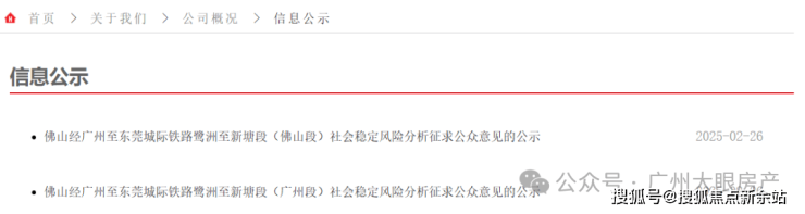 广州地铁官网发布了佛穗莞城际广州段、佛山段的社会稳定风险分析征求公众意见的公示。