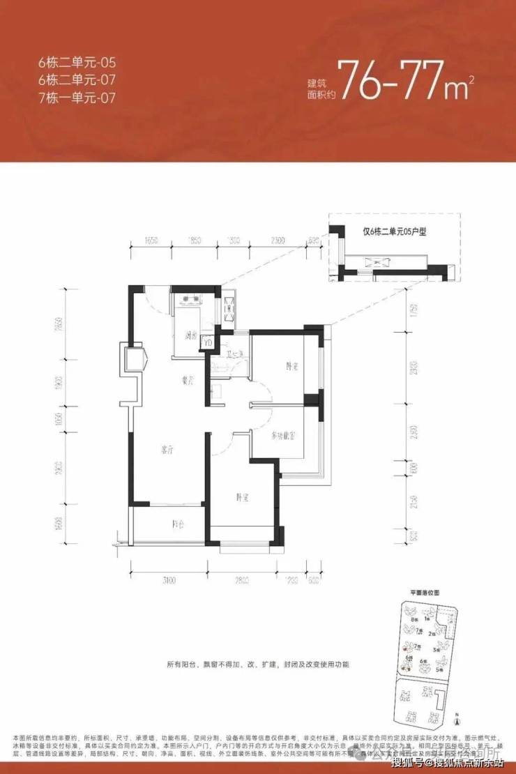 75-78㎡3房1卫:单价约4.47-4.95万/㎡,总价约346-388万