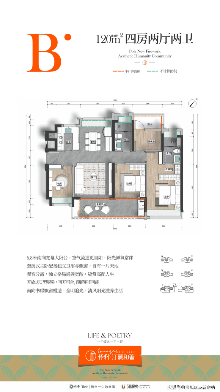 依托巧妙设计,项目平均得房率超过87.6%。以建面约120㎡户型为例,项目可以做到4房,而且是正规格局,舒适度很高,但市面上同类产品只有3房。