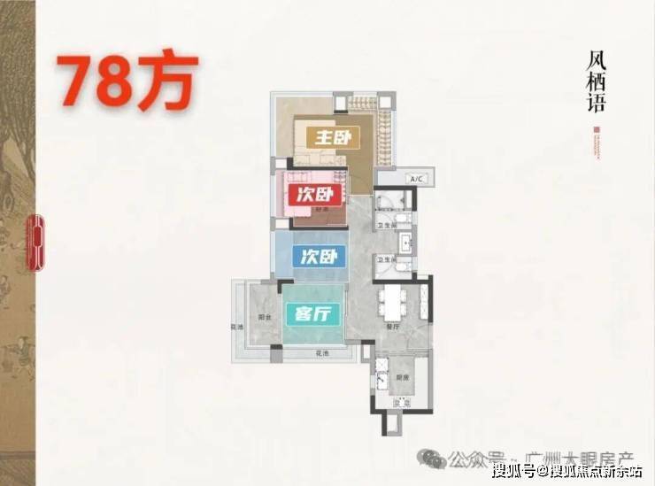 也有约110㎡的明星四房,客厅一面带飘窗,采光更佳,视野更开阔。
