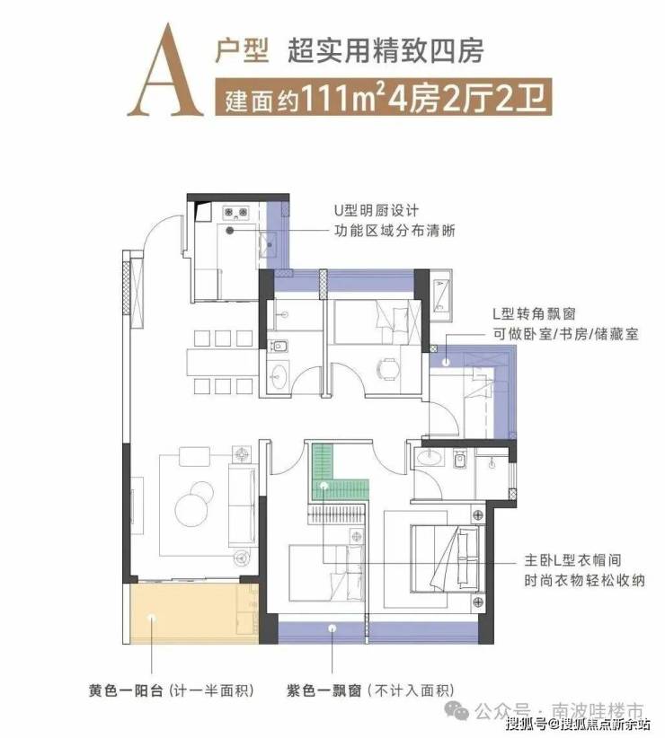 111平: 四房两厅两卫 66套