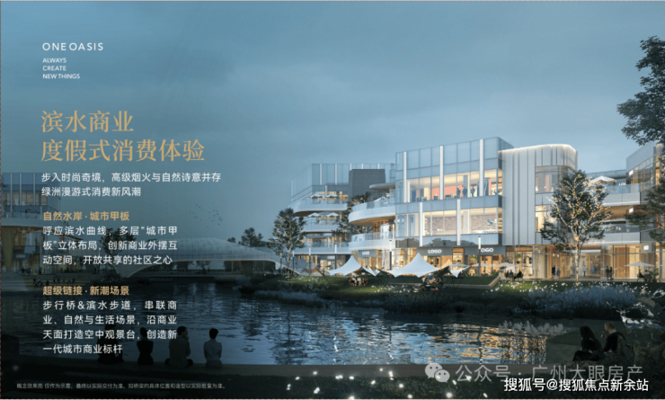 自带约4万方滨水商业:以新加坡vivo city为设计蓝本,采用开放式布局,增加了外摆和互动空间,类似珠江新城天德广场的猎人坊