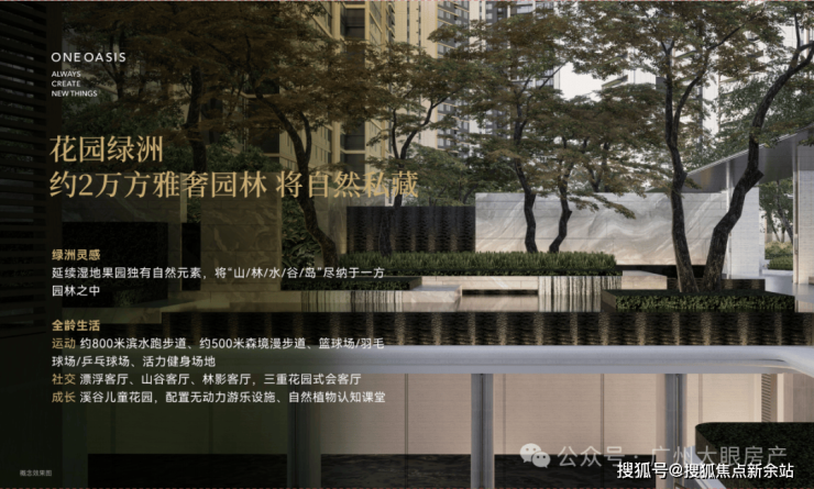 整个滨水园林包括了5大功能区,主入口的林溪港湾、拾阶云台、漂浮会客庭院、亲子儿童乐园(即溪谷花园)、配置羽毛球和篮球场的悦动之港,真正做到了一步即一景。