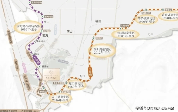 项目距2号线(豪宅线)与5号线(发展线)首发赤湾站约300m(直线距离),从此,坐地铁而不是站地铁,未来新小南山隧道(预计2027年竣工)、望海路升级等重大交通配套持续落地,咫尺间连通蛇口、前海。