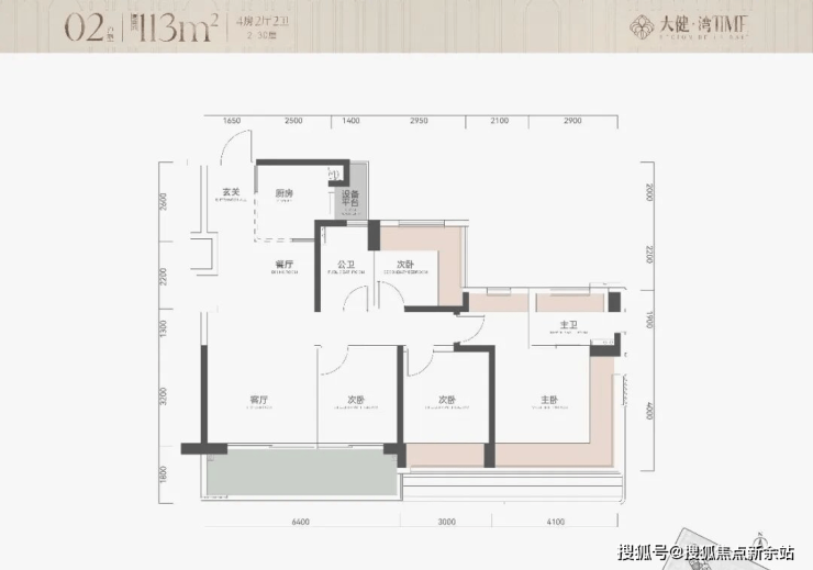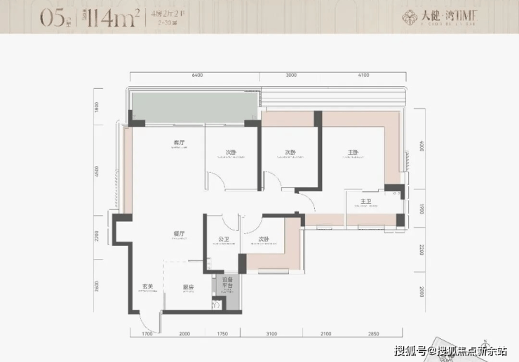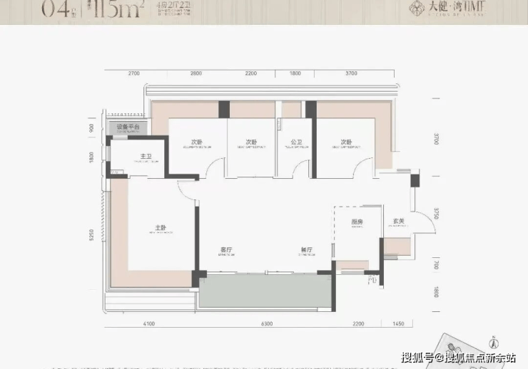 建面约114㎡四房户型是113㎡户型的镜像版,格局一模一样。