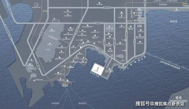 项目位于南山区蛇口街道望海路以南、金世纪路以西。东侧为半岛城邦,西侧与招商双玺隔海相望,北侧为内湾海域,南侧则是一线永久无遮的深圳湾无敌海景。