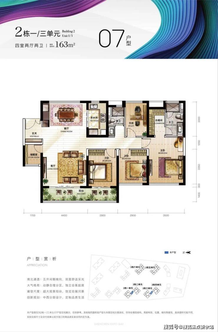 深圳会展湾总建面超300万㎡,包括约160万㎡会展展馆与154万㎡综合配套,会展湾·东城位于会展湾整体的东北边,与会展展馆一河之隔。