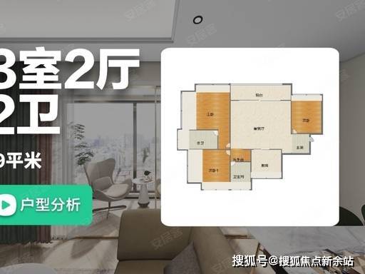 户型方正通透,三开间朝南,采光通风俱佳,全明无暗角;动静分区明确,动区客厅、餐厅、厨房相连,静区卧室集中布局,互不干扰,兼顾生活便捷与居住私密。