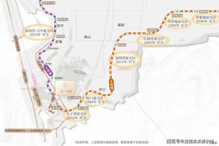 - 地铁:项目距2号线(豪宅线)与5号线(发展线)首发赤湾站约300m(直线距离),从此,坐地铁而不是站地铁,未来新小南山隧道(预计2027年竣工)、望海路升级等重大交通配套持续落地,咫尺间连通蛇口、前海;