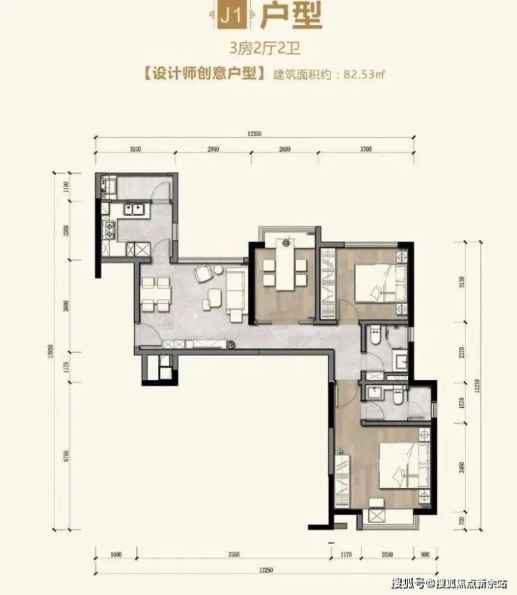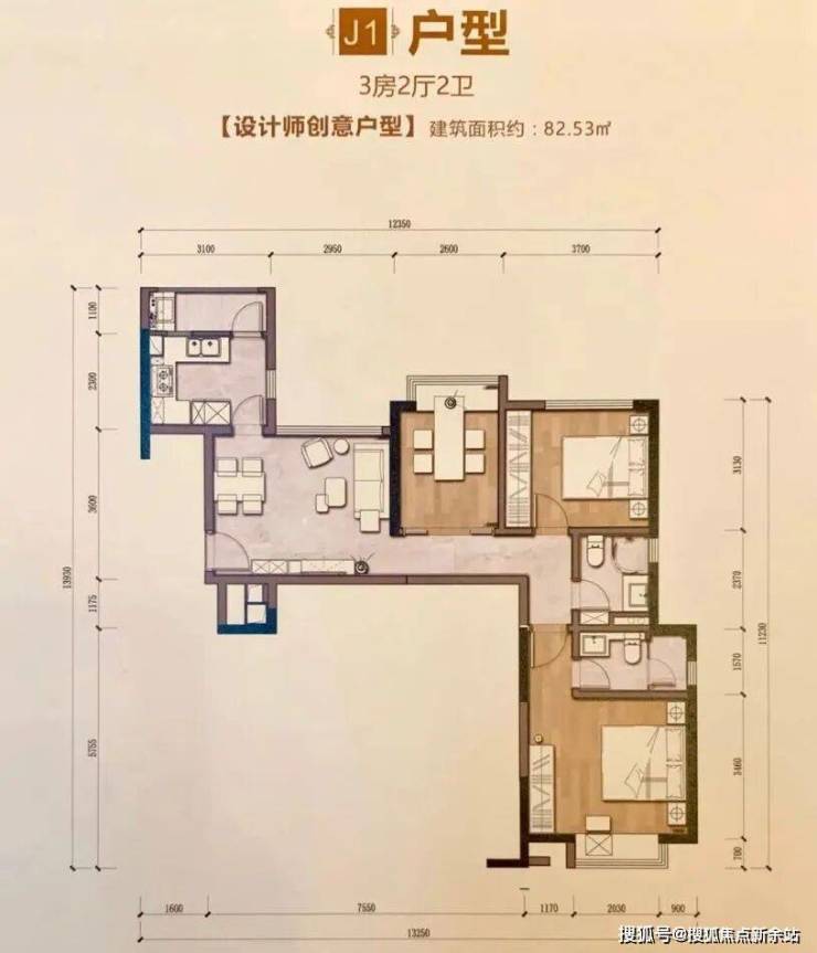 J1户型【82.53㎡】3房2厅2卫