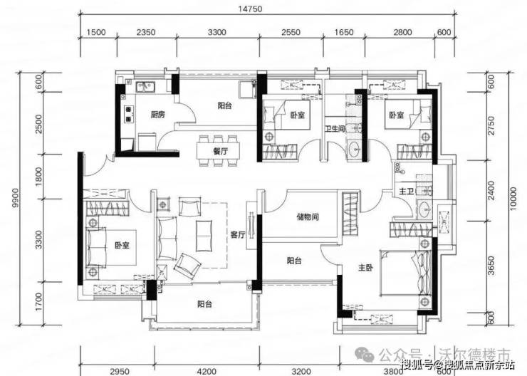 ✅ G01户型:约135㎡ 五房两厅两卫: