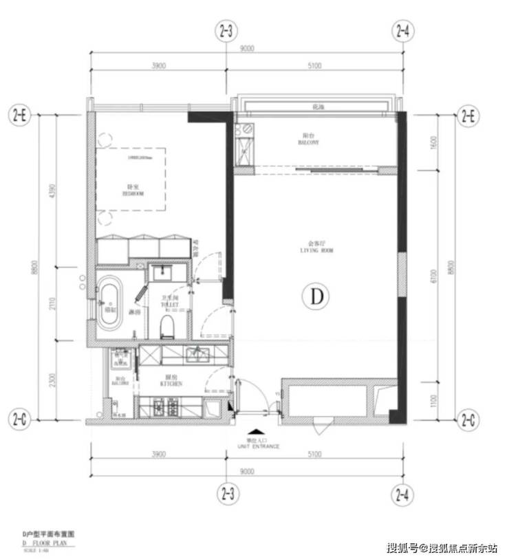 D户型:90平方米,一房一厅