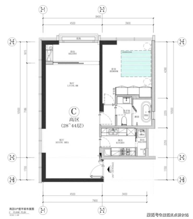 C户型:100平方米,一房一厅