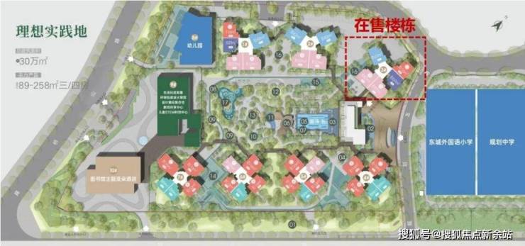 整个楼盘规划了7栋住宅楼,1栋商业办公楼,1栋商业酒店办公楼,以及1所9班幼儿园。位于东城外国语小学对面